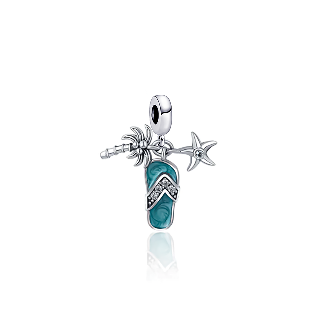 Blue Enamel Beach Charm for Bracelet (Silver)