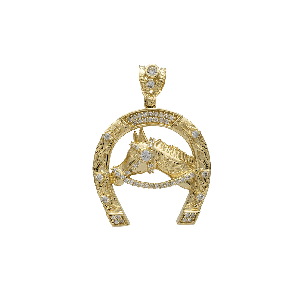 Zirconia Horseshoe Horse Head Pendant (14K)