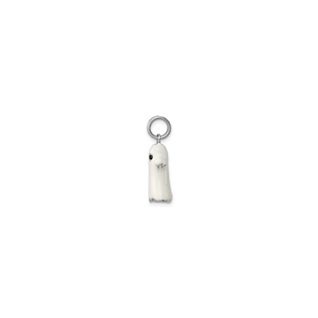The classic and widely known look of a ghost is crafted in sterling silver and colored with black enamel for the eye holes and white for the rest of the body. Spooky and endearing at the same this little pal is the piece to go for now that Halloween is on the horizon.
