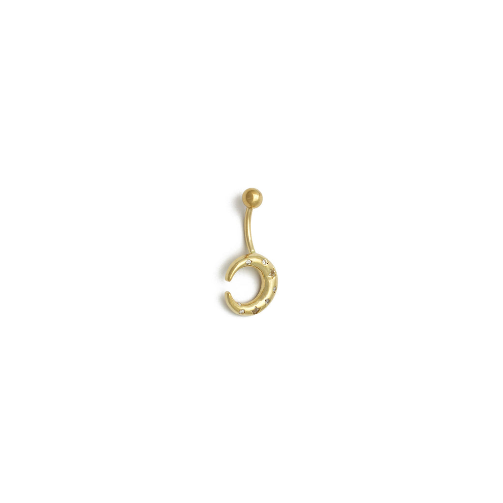 The iconic crescent moon is embellished with white cubic zirconia gemstones ready to grace the wearer's belly button.