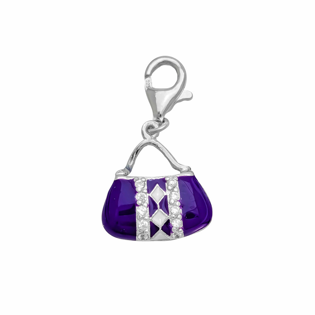 Purple Enameled CZ Purse Charm (Silver)