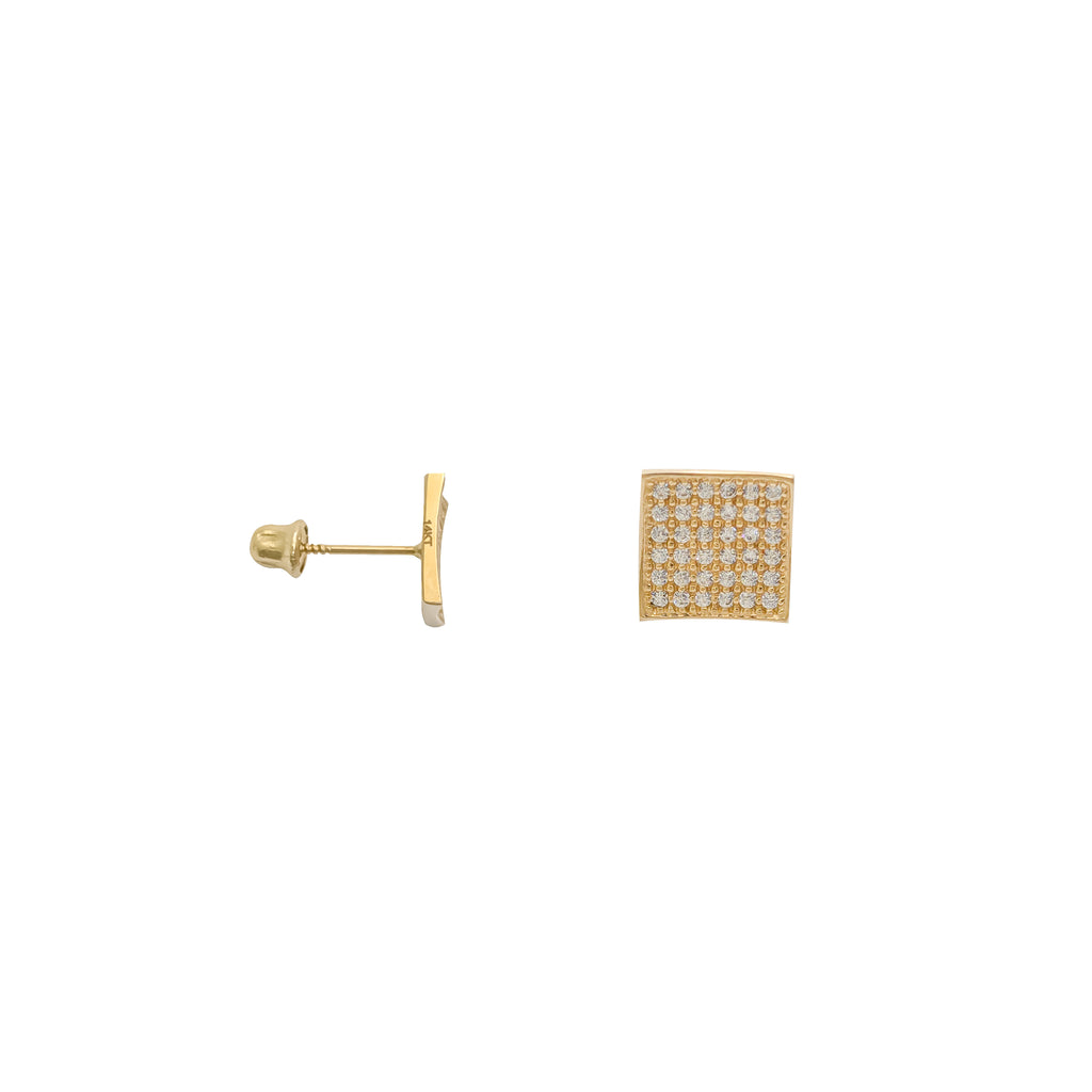Square Concave CZ Screw Earring (14K)