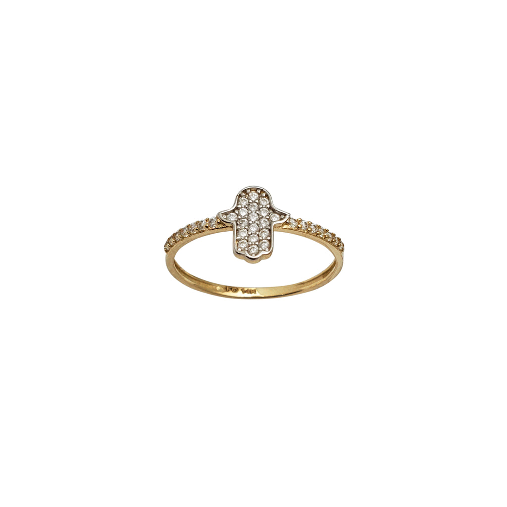 Zirconia Hamsa Hand Ring (14K)
