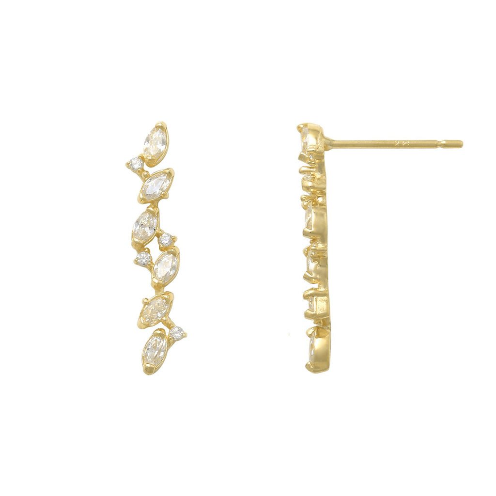 Zirconia Marquise & Round Graduated Stud Earrings (14K)