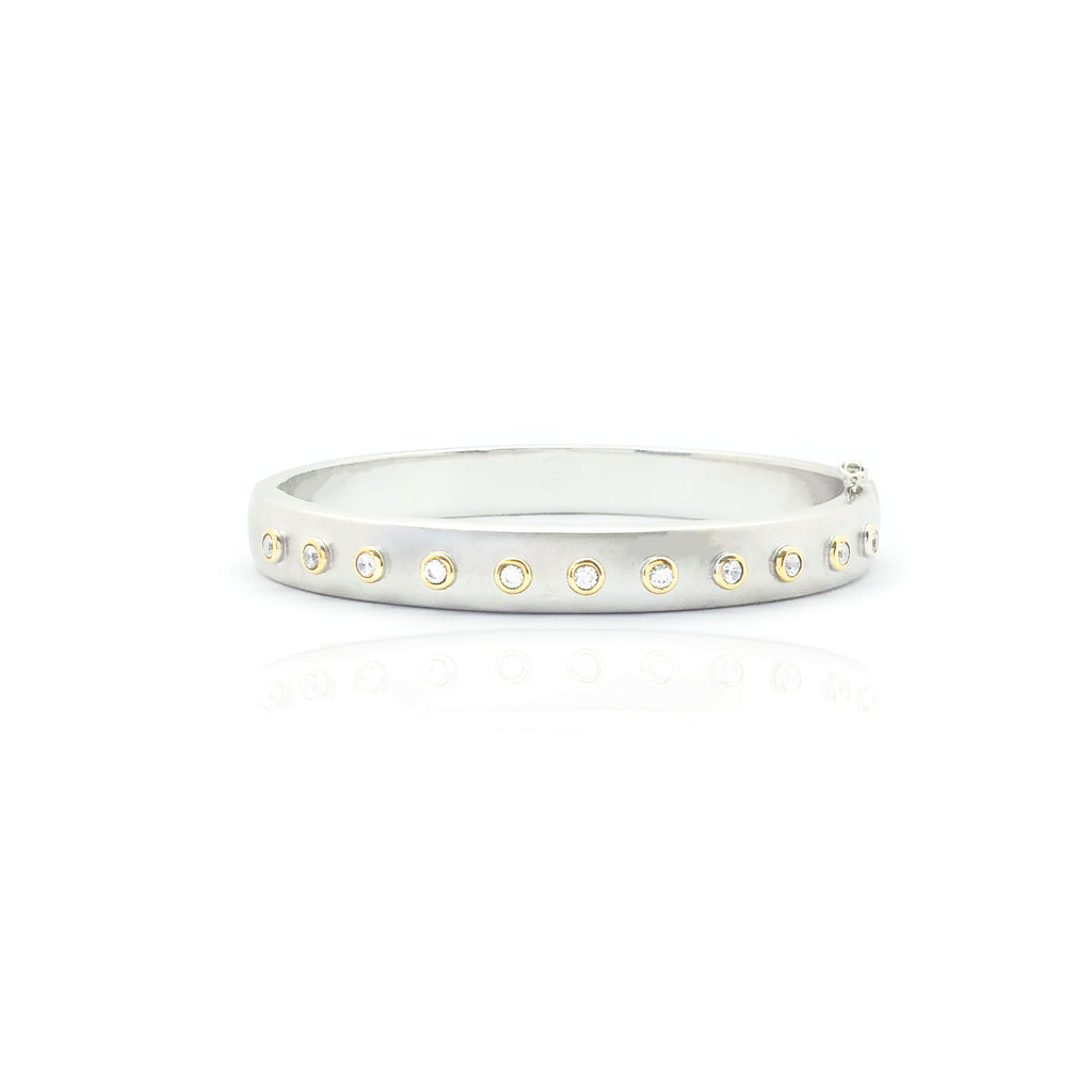 Two-Tone Round CZ Bangle Bracelet (14K)