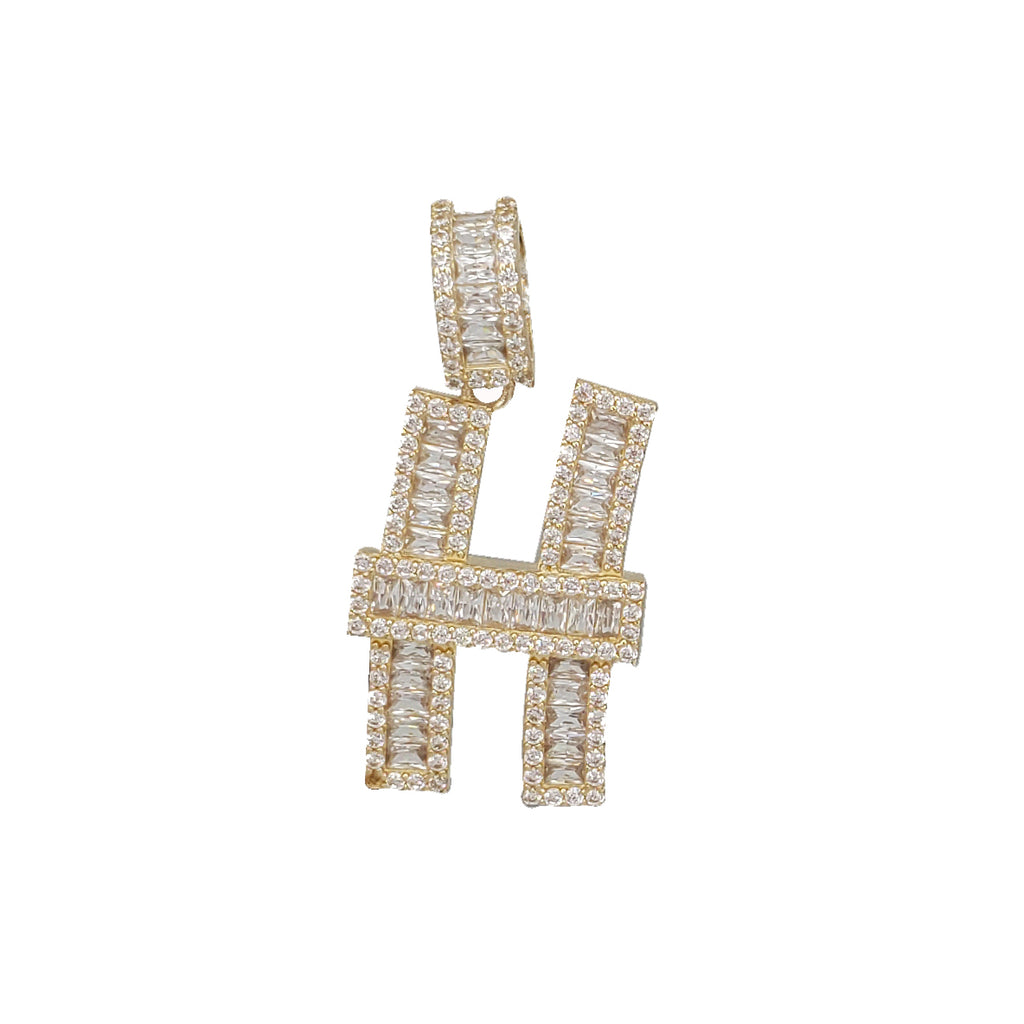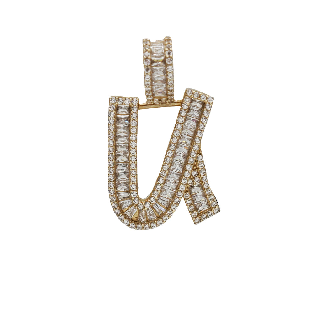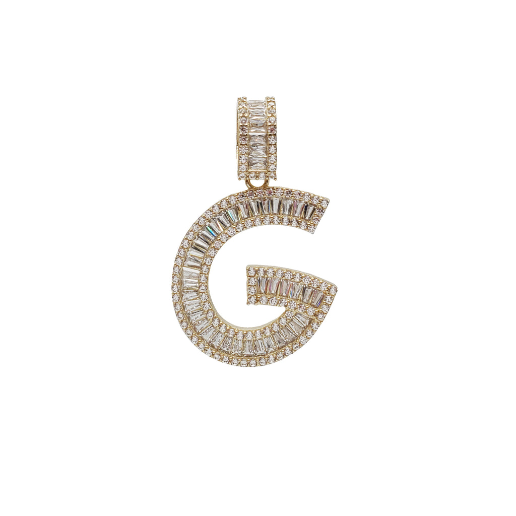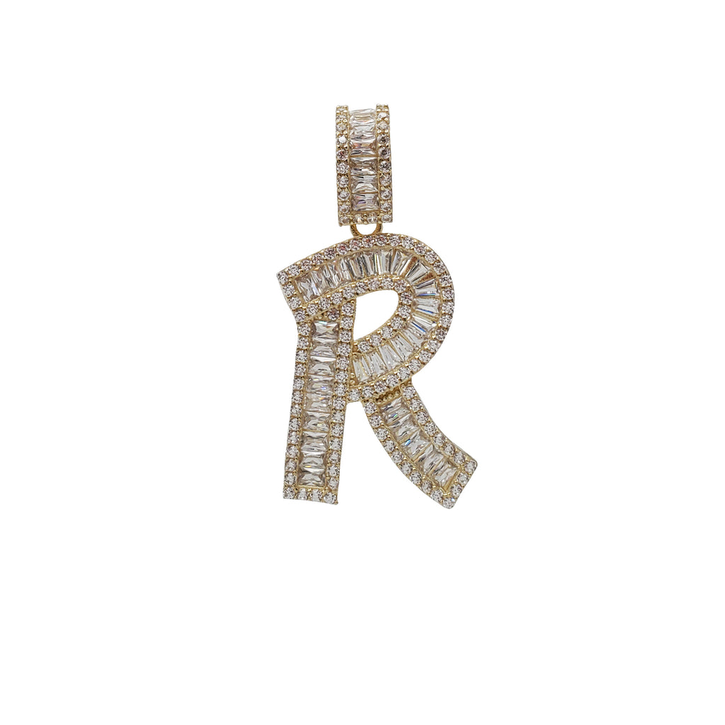 Zirconia Baguette Cursive Initial Letter Pendant (14K)