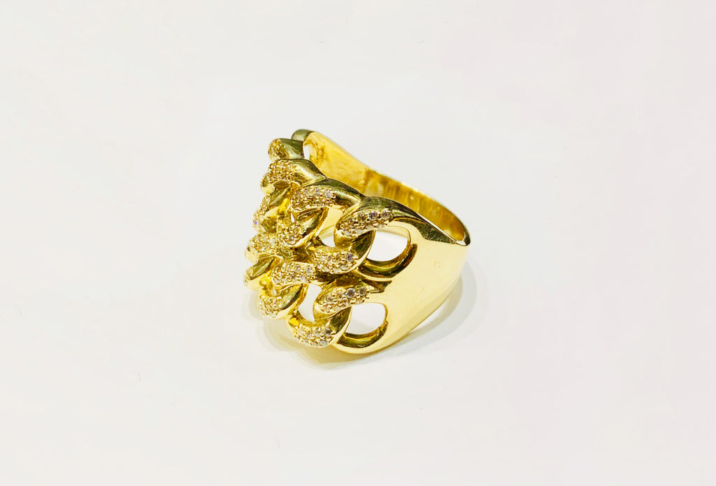 This is a brilliant Double Miami Cuban Ring with cubic zirconia stones.