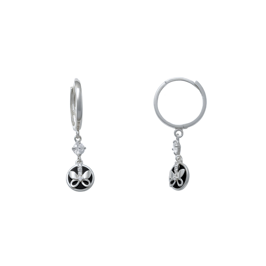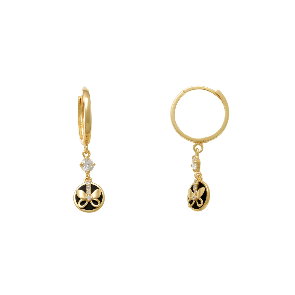 Black Onyx & Zirconia Butterfly Dangling Huggie Earrings (14K)