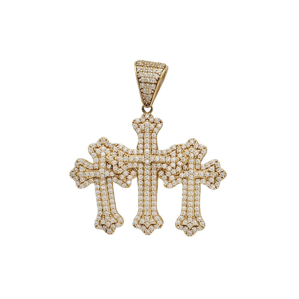 Iced Out Holy Trinity Triple Cross Pendant (14K)