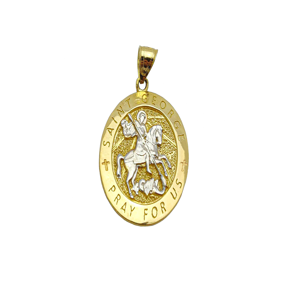 Two-Tone Oval "Saint George" Medallion Pendant (14K)