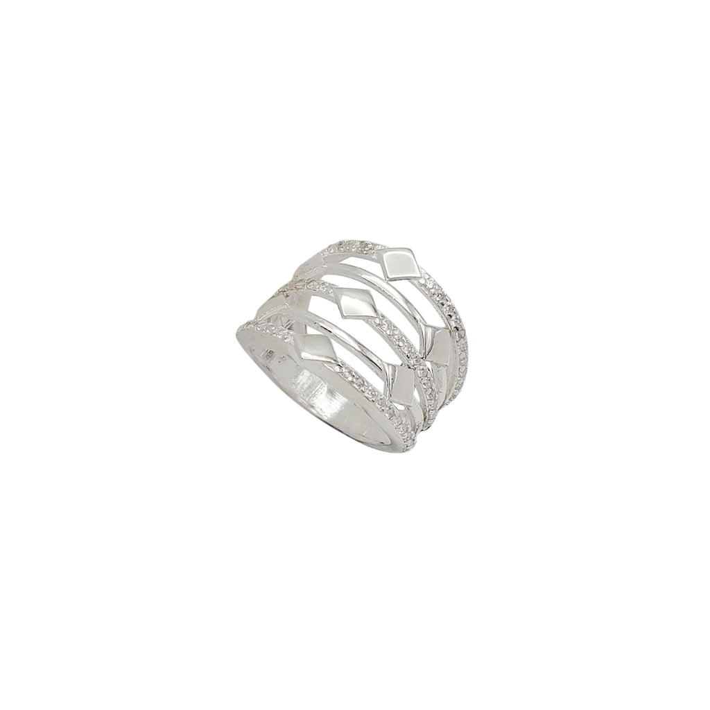 Zirconia 5-Rows Rhombus Pattern Ring (Silver)