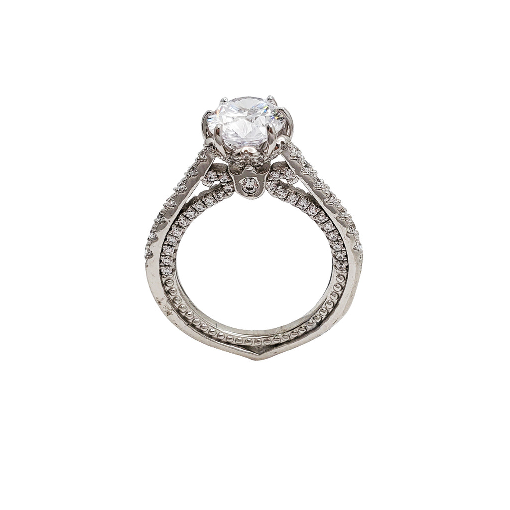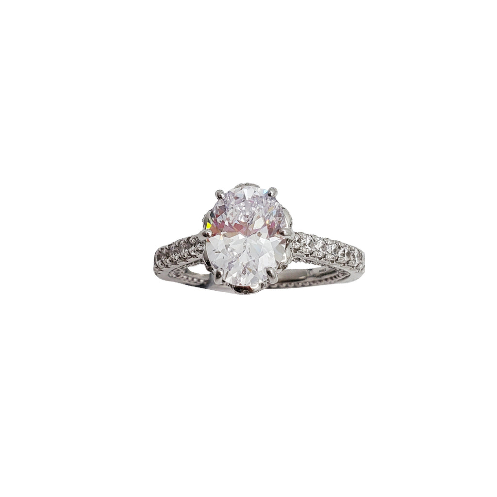Zirconia Milgrain Filigree Engagement Ring (Silver)
