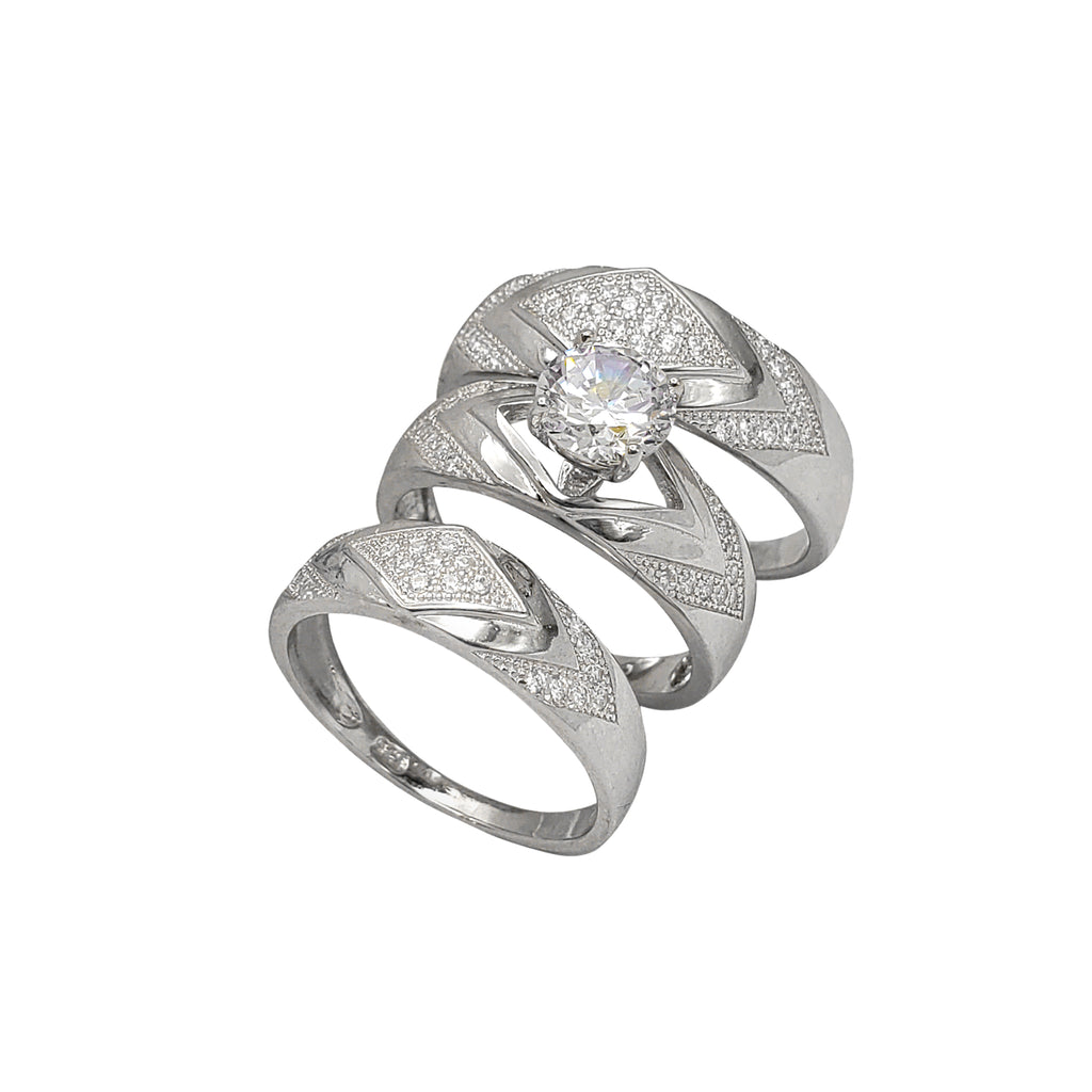Zirconia Three Piece Set Wedding Ring (Silver)