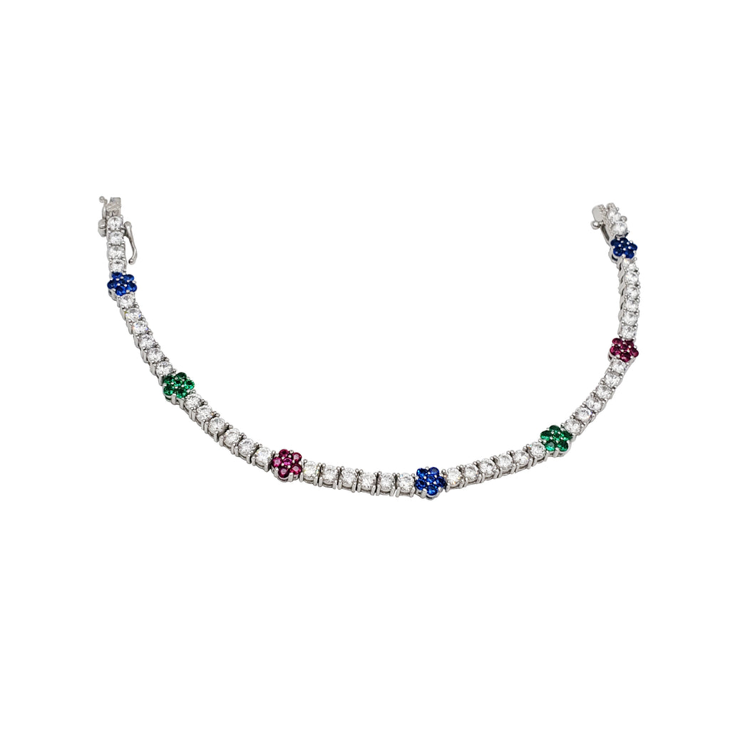 Multi-Color CZ Flower Bracelet (Silver)