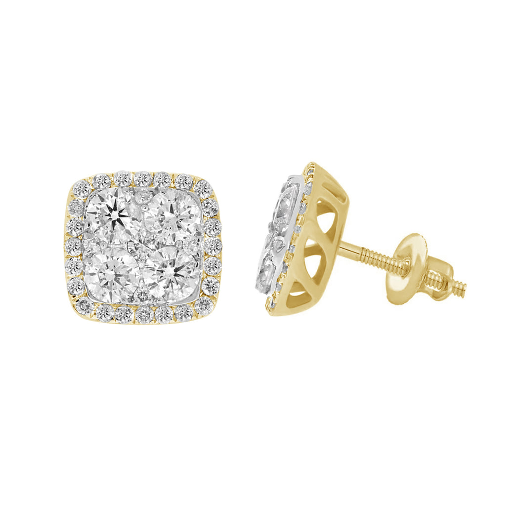 Diamond Two-Tone Round Cluster Square Stud Earrings (14K)
