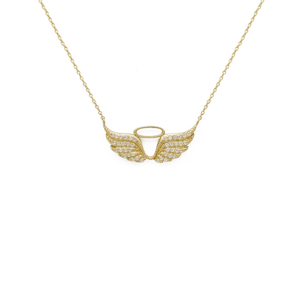 Angel Wings & Halo Charm Necklace (14K)