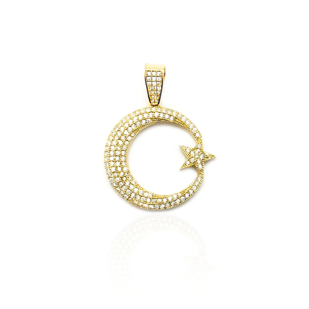 Iced-Out Crescent Moon & Star Pendant (14K)