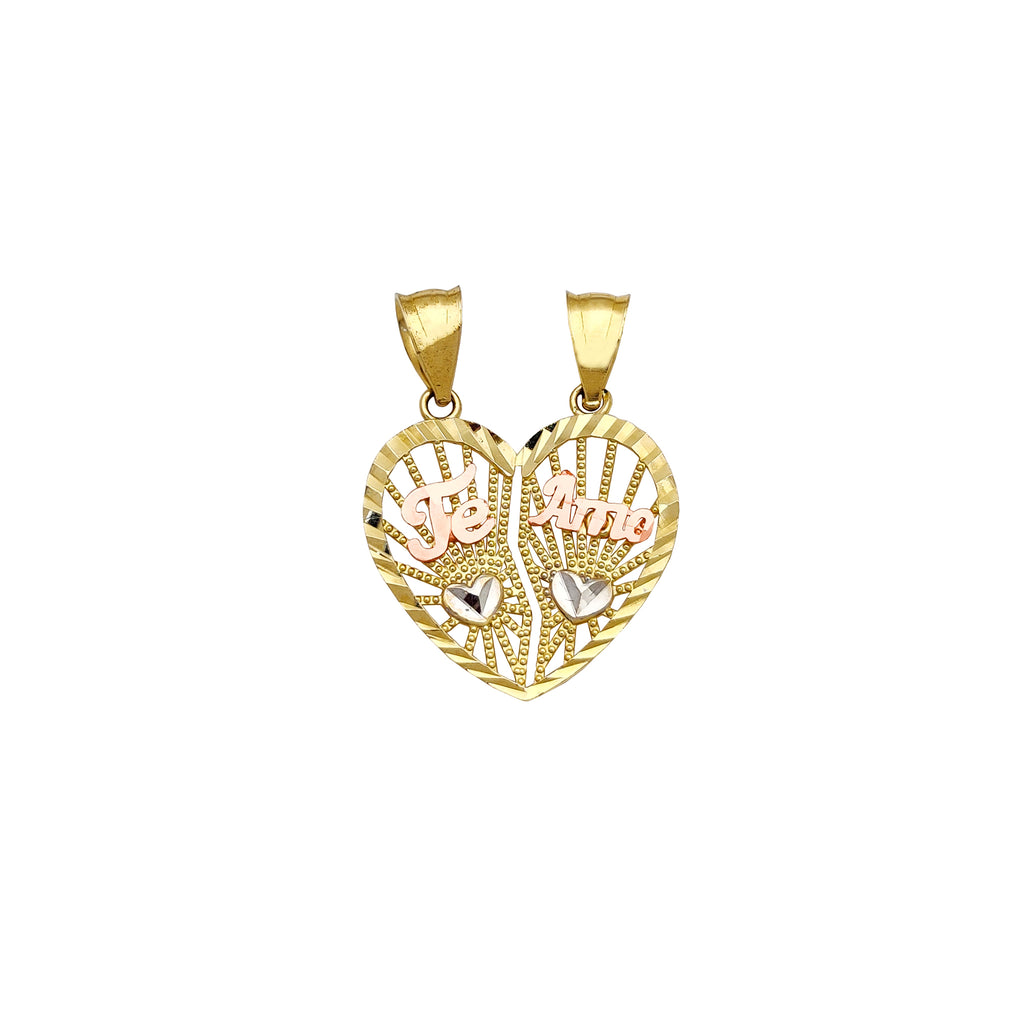 Milgrain Parted Heart "Te Amo" Pendant (14K)