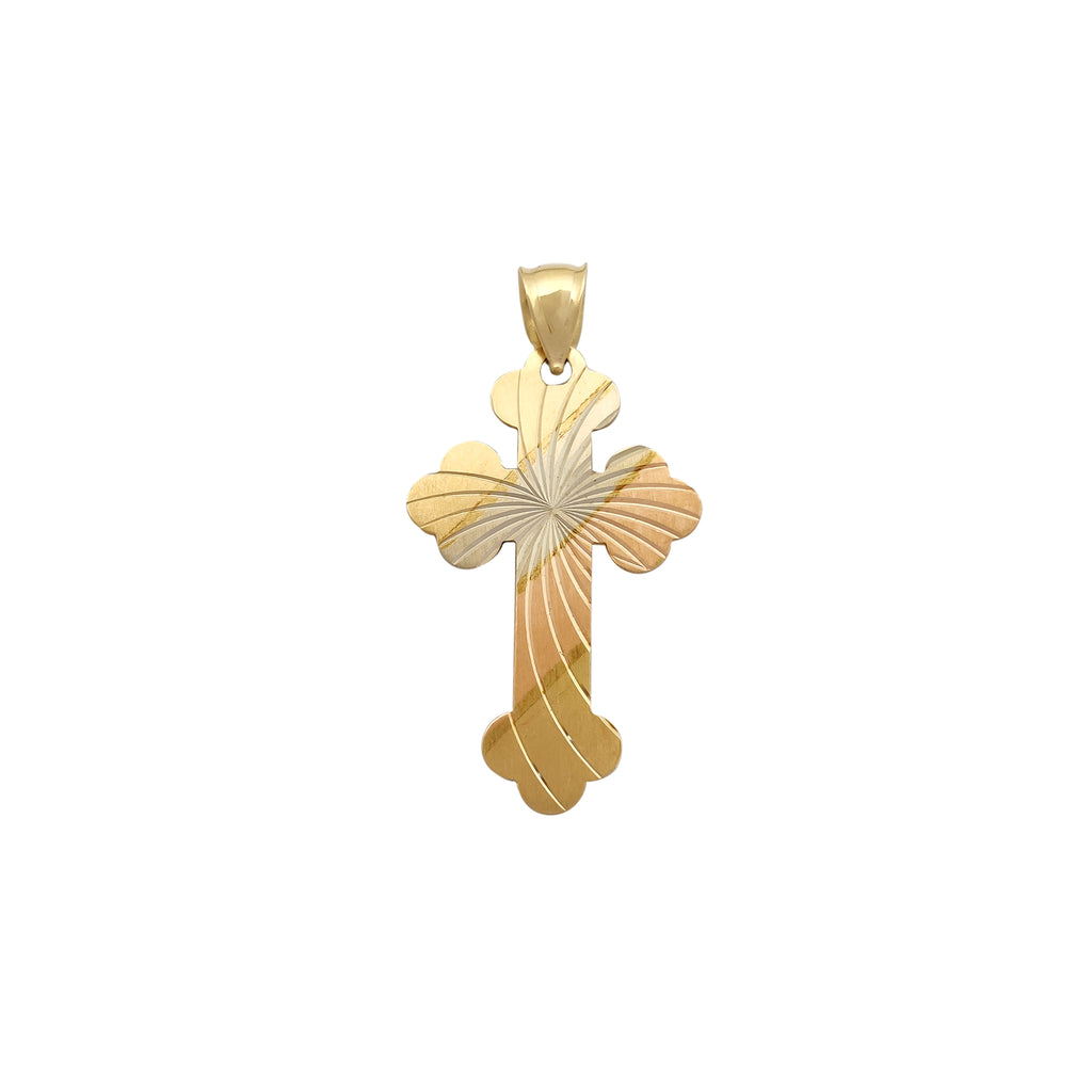 Tri-Tone Radial Diamond-Cut Cross Pendant (14K)