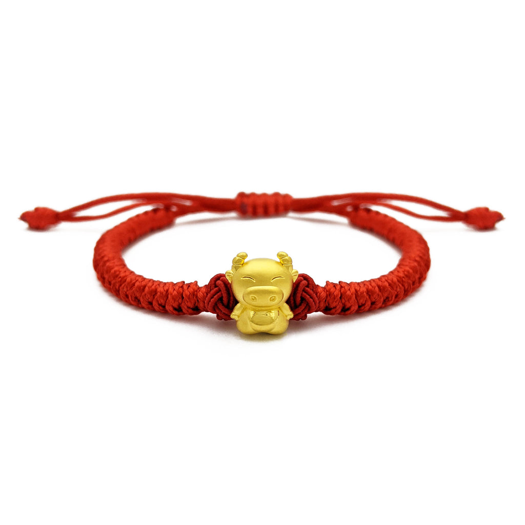 Happy Ox Chinese Zodiac Red String Bracelet (24K)