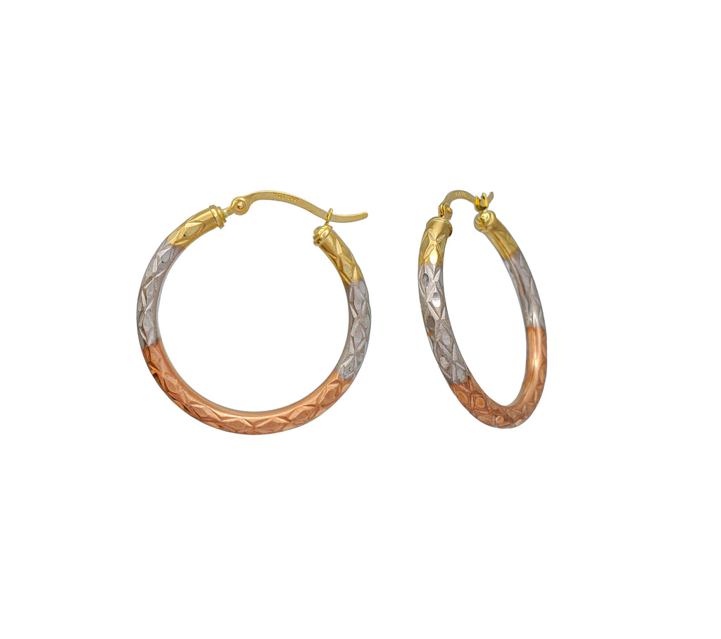 Tri-Tone Diamond-Cut Hoop Earring (14K)