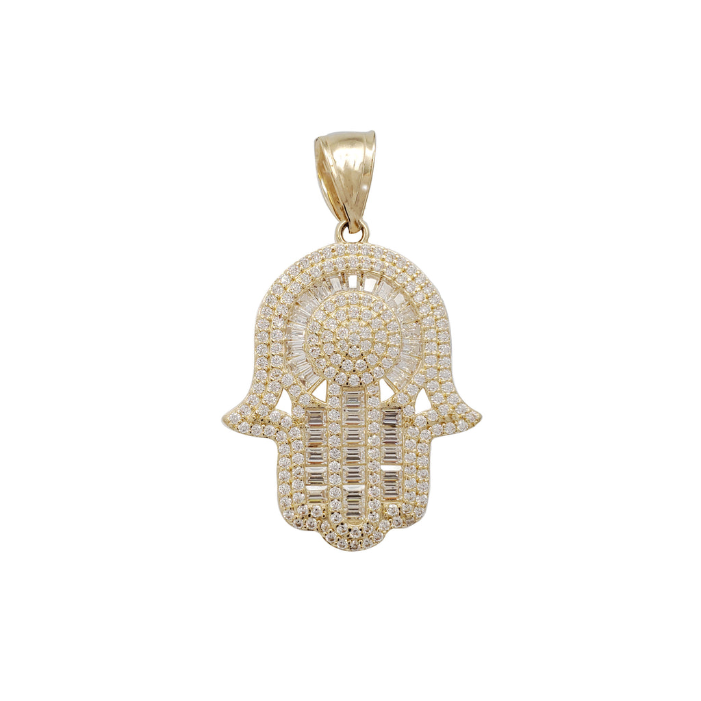 Iced-Out Hamsa Hand with Evil Eye CZ Pendant (14K).