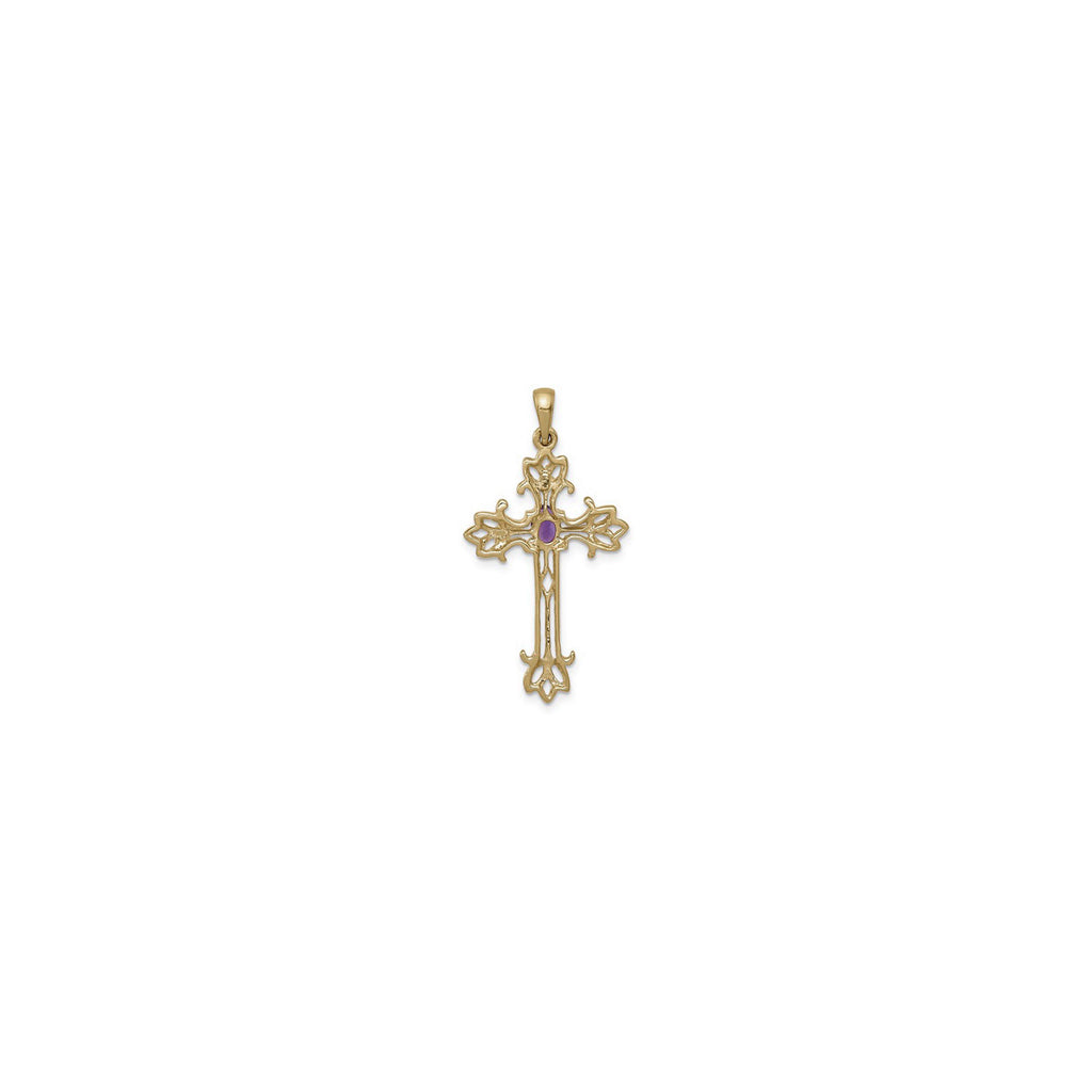 Oval Purple Stone Fleur De Lis Cross Pendant (14K)