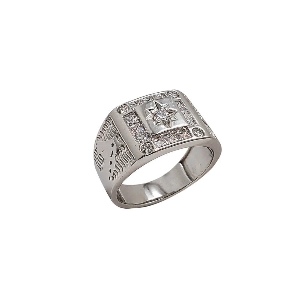 Zirconia Horsehead & North Star Signet Ring (Silver)