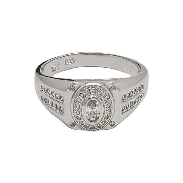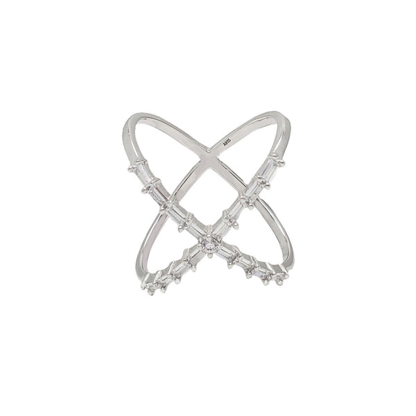 2-Piece Baguette & Round Zirconia Engagement/Wedding Ring Set (Silver)