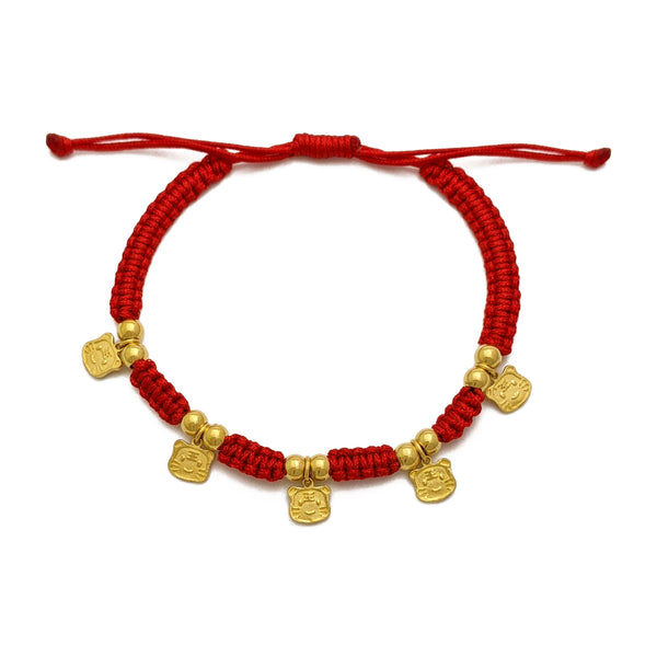Tiger Quintuplet Chinese Zodiac Red String Bracelet (24K)