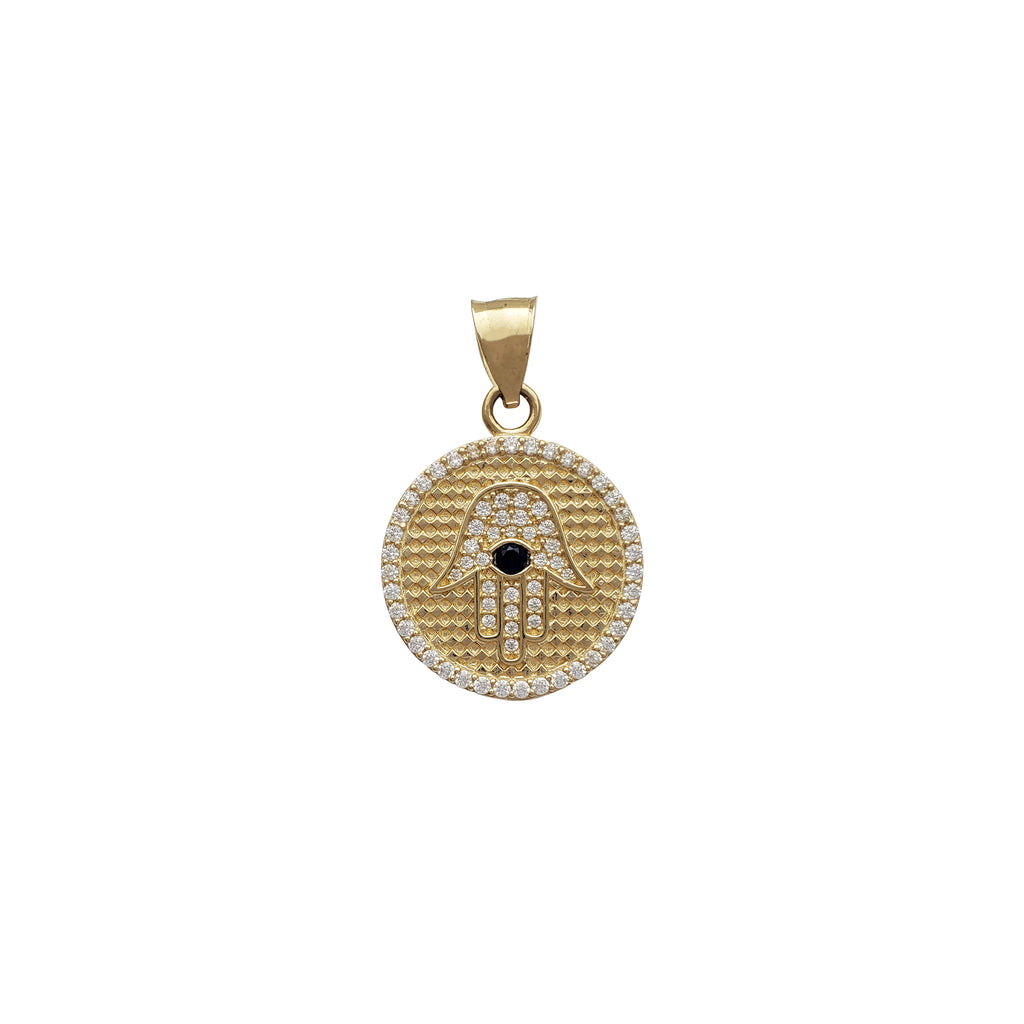 Iced-Out Hamsa hand Round Medallion Pendant (14K)