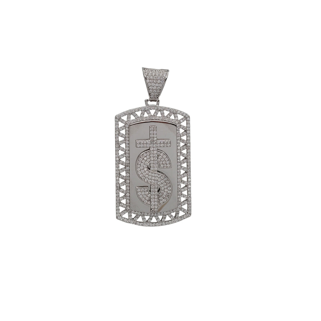 Zirconia Cuban Sign Dollar Sign Pendant (Silver)