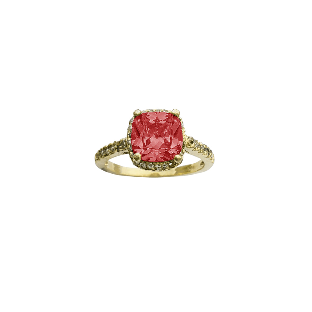 Zirconia Red Stone Cushion Shape Engagement Ring (14K)