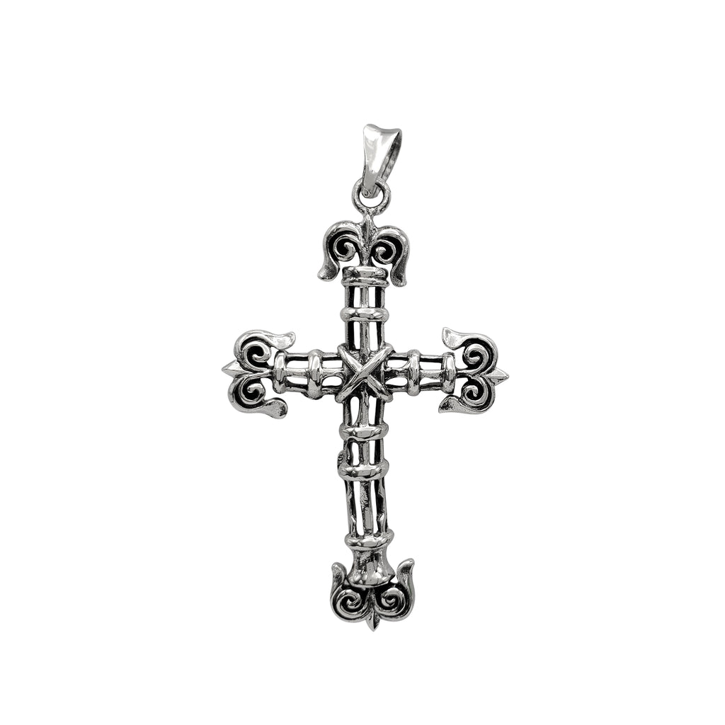 Antique Finish Filigree Pattern Cross Pendant (Silver)