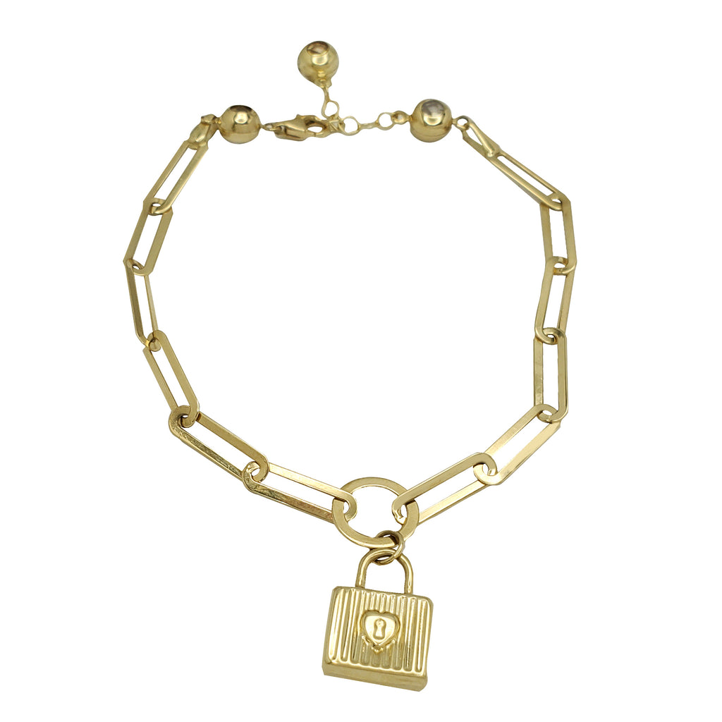 Paper Clip Link Dangling Charm Bracelet (14K).
