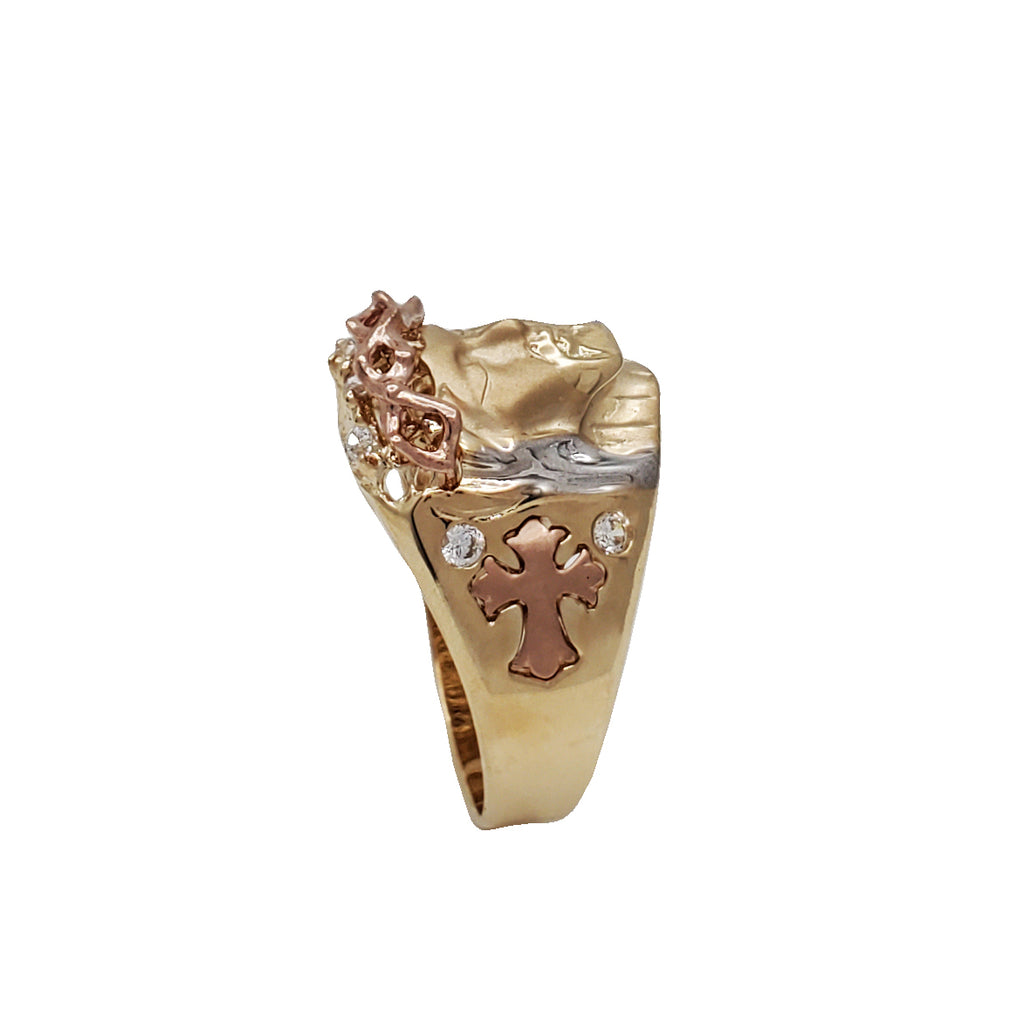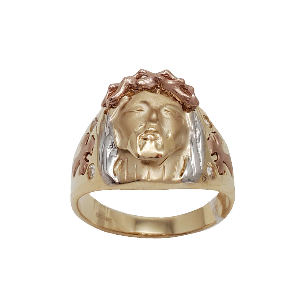 Tricolor Zirconia Jesus Head Ring (14K)