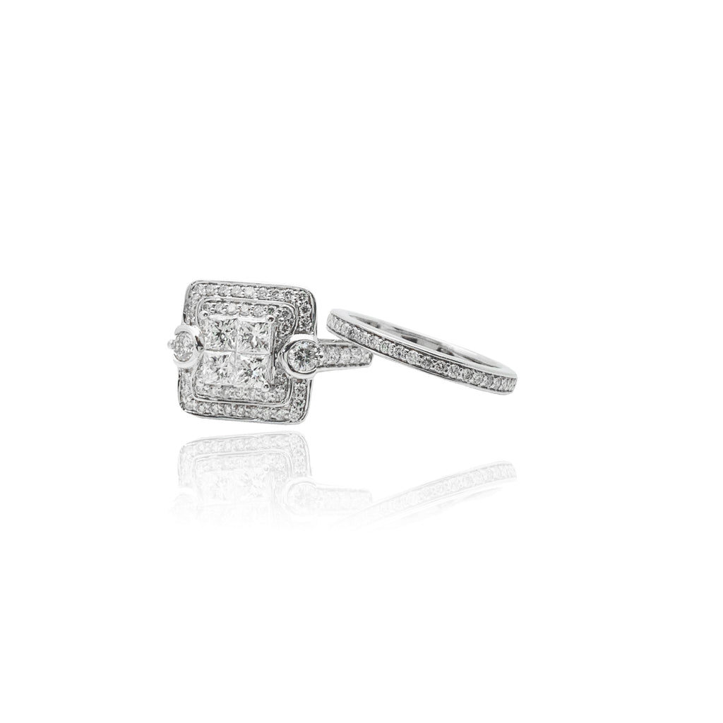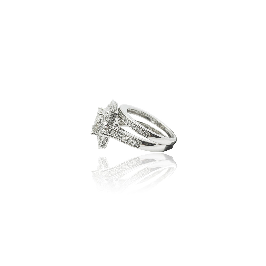 Diamond Cushion Halo Pave Double Ring (14K).