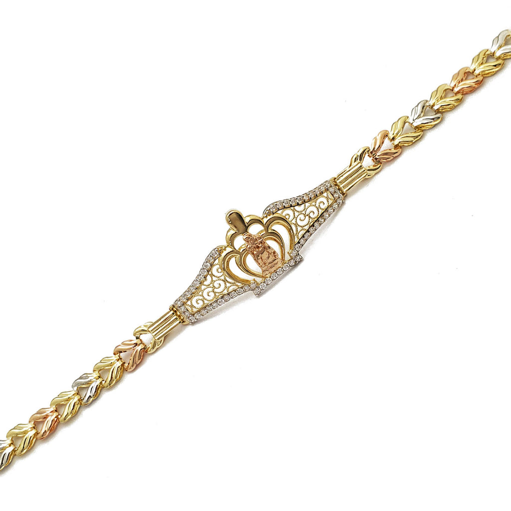 Tri-Color Virgin Mary CZ Bracelet (14K).