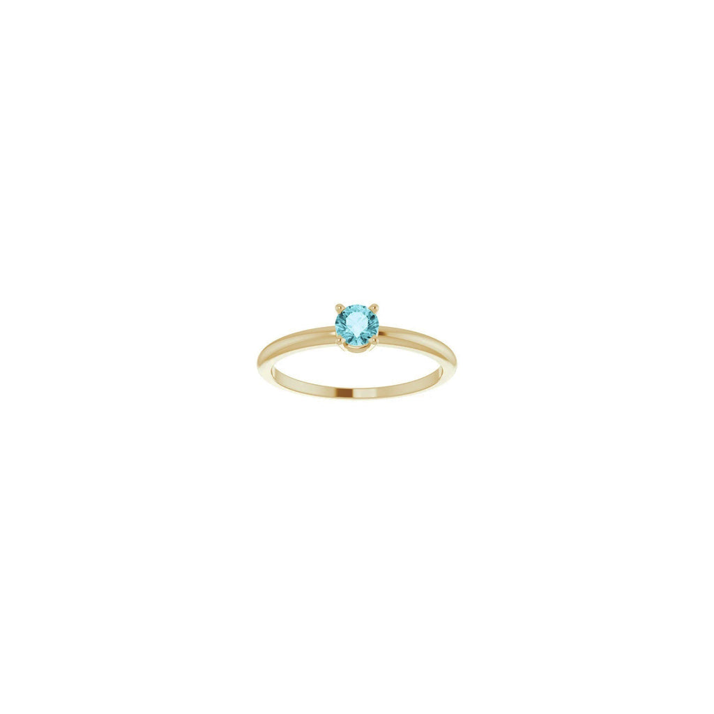4 mm Round Natural Blue Zircon Solitaire Ring