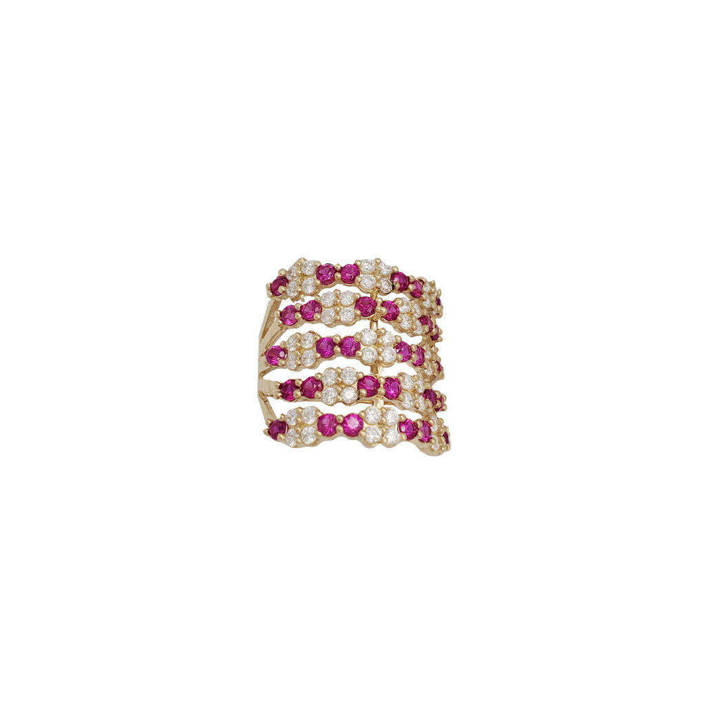 Zirconia Red Five-Row Semanario Ring (14K)