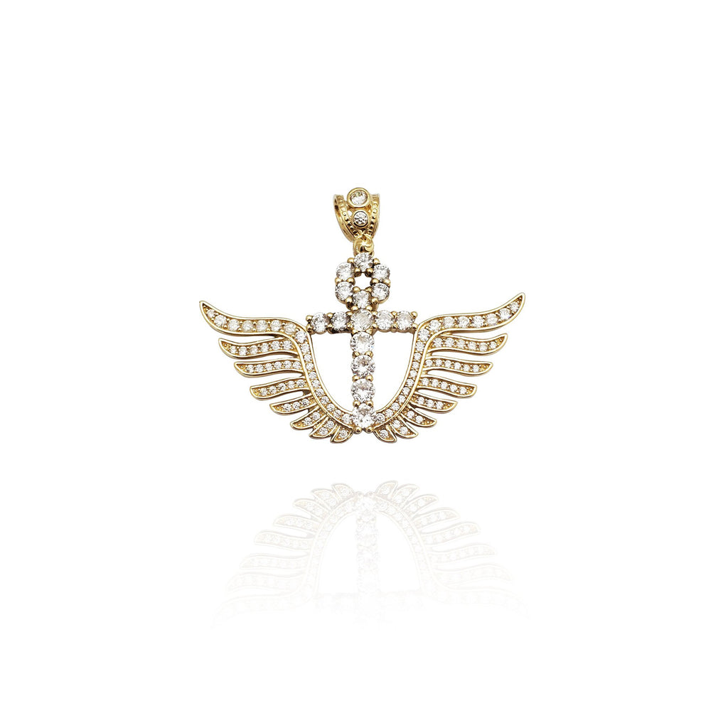 Iced-Out Winged Ankh CZ Pendant (14K)