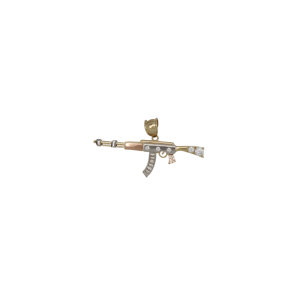 Tri-Gold AK47 Channel-Set Clip Pendant (14K)