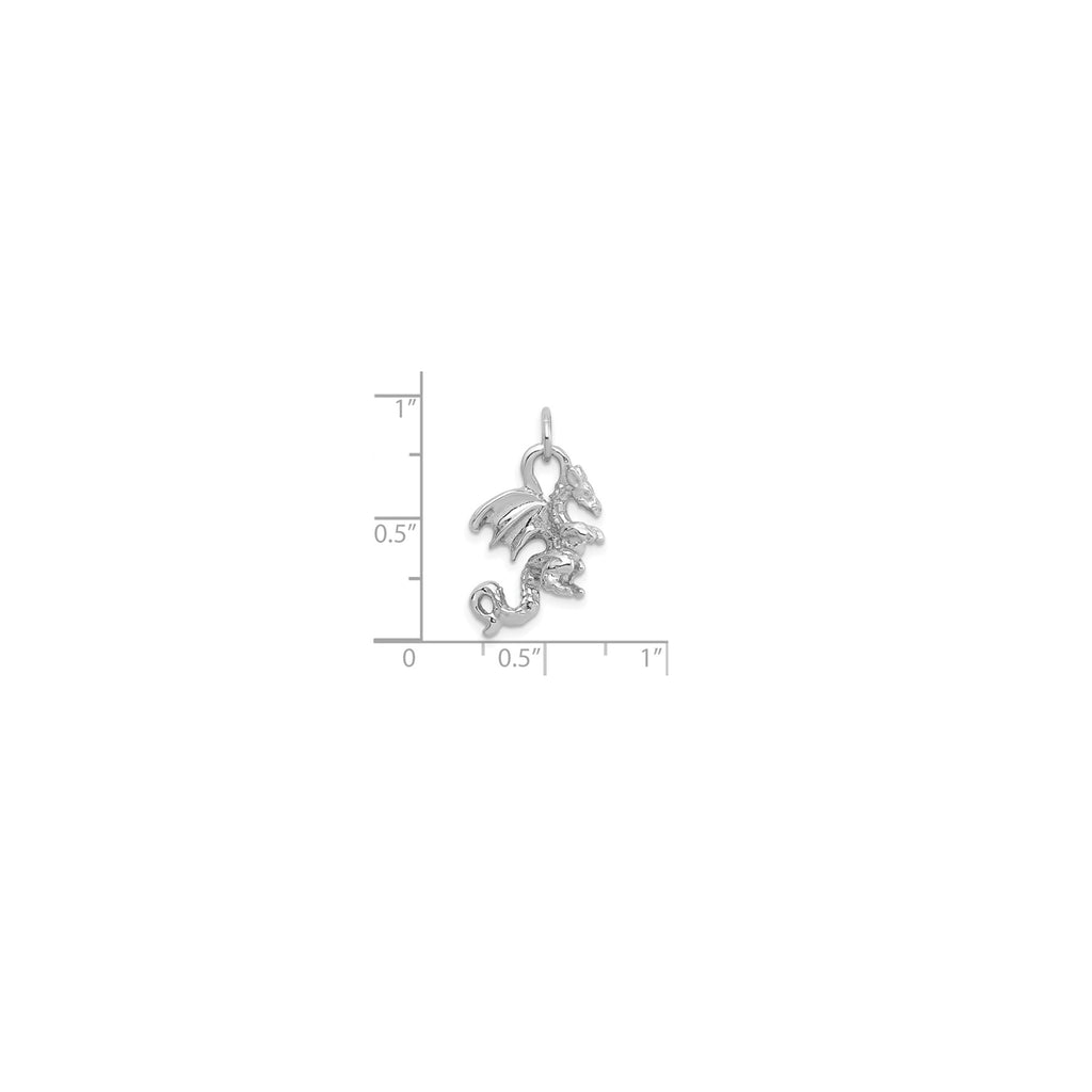 Solid Polished 3-D Dragon Charm Pendant (Silver)