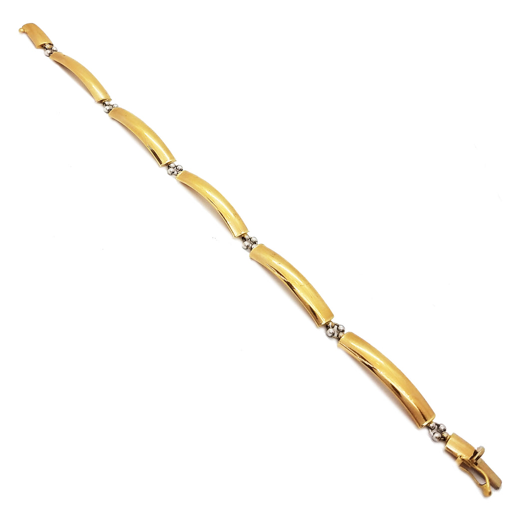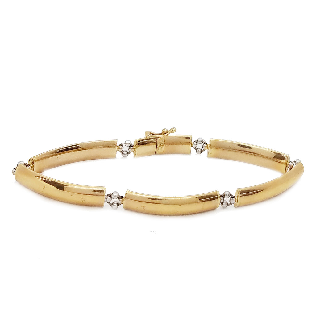 Curved Yellow Gold Bar and Bead Bracelet (14K).