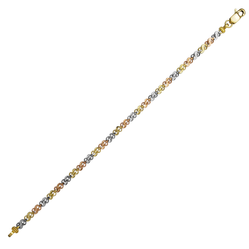 Tricolor Milgrain Diamond-cuts Dollar Sign Fancy Lady Bracelet (14K).