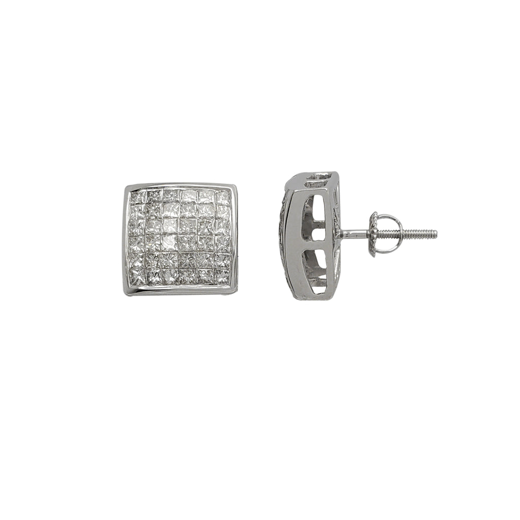 Diamond Princess-cut Invisible-Set Square Stud Earrings (14K)