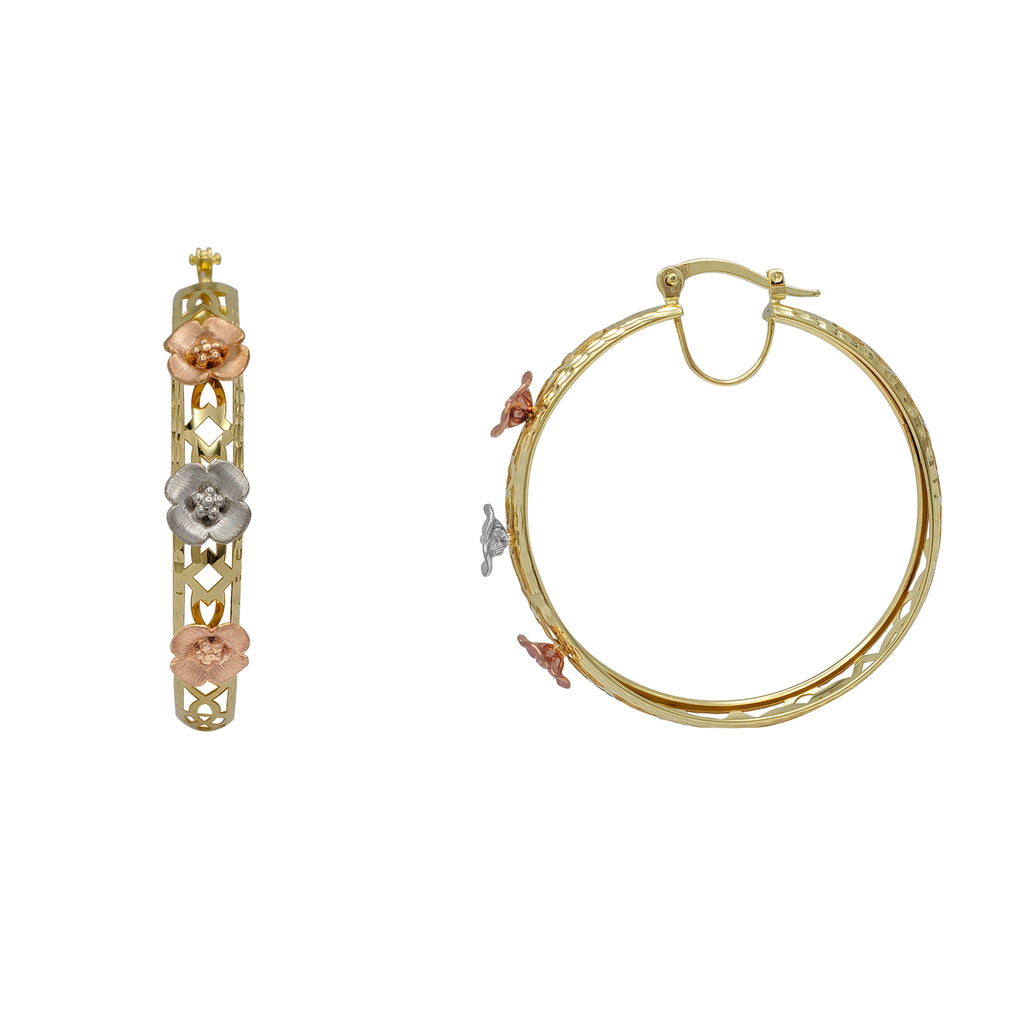 Tricolor Flower Outlined Hoop Earrings (14K)