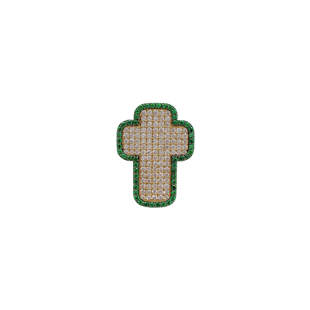 Iced-Out Puffy CZ Cross Men Ring (14K)