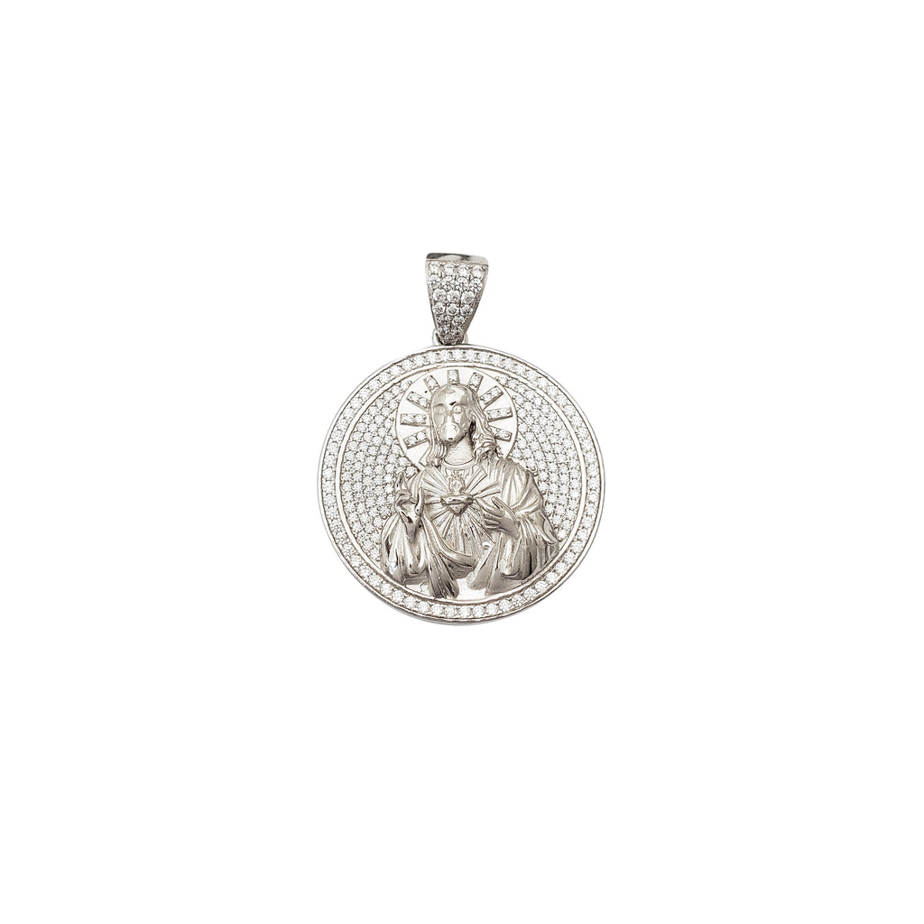 Iced-Out Jesus Round CZ Pendant (Silver)