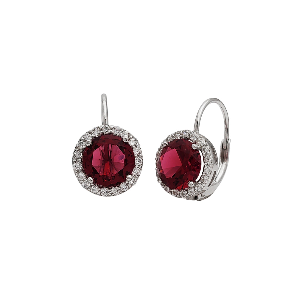 Zirconia Halo Red-Stone Huggie Earrings (Silver)